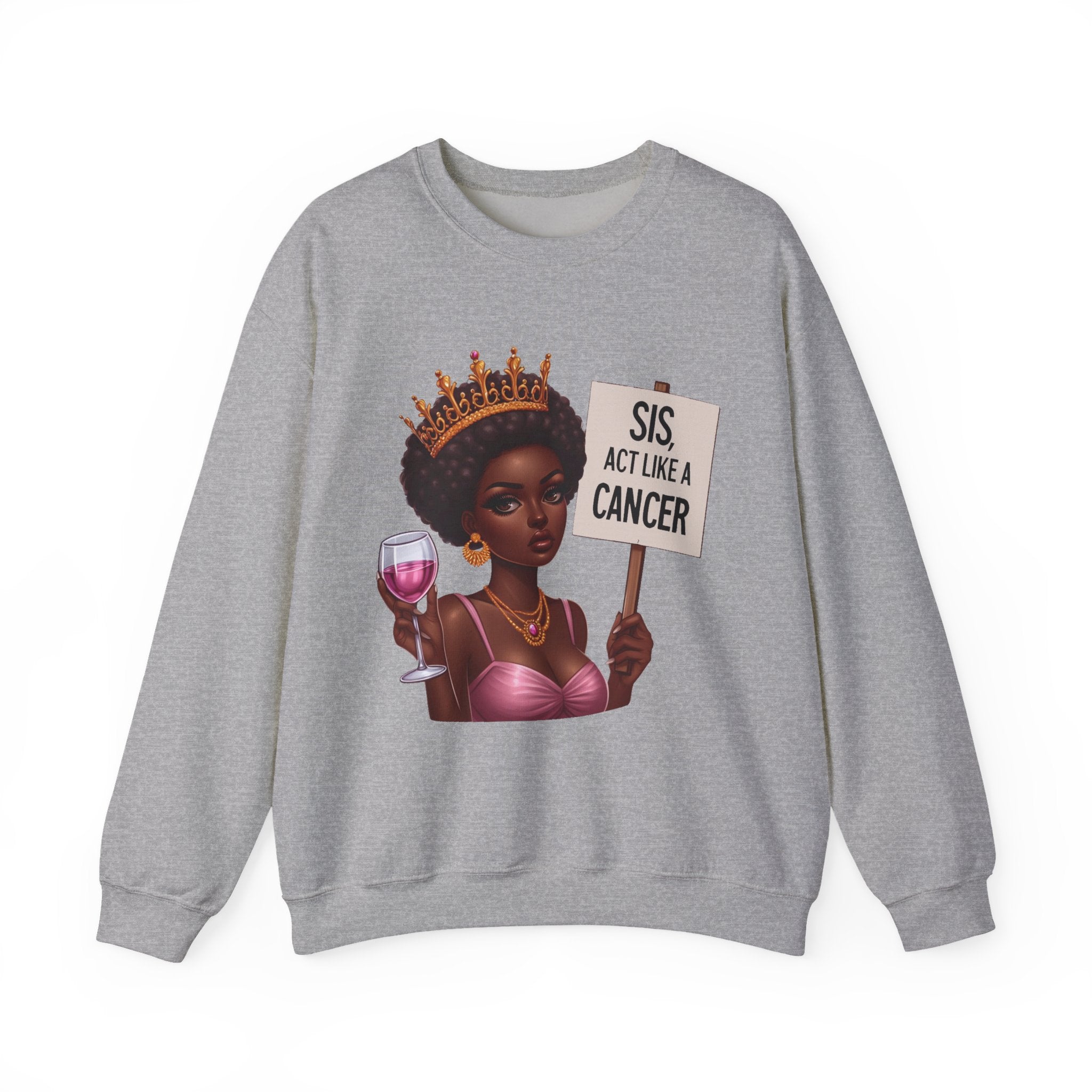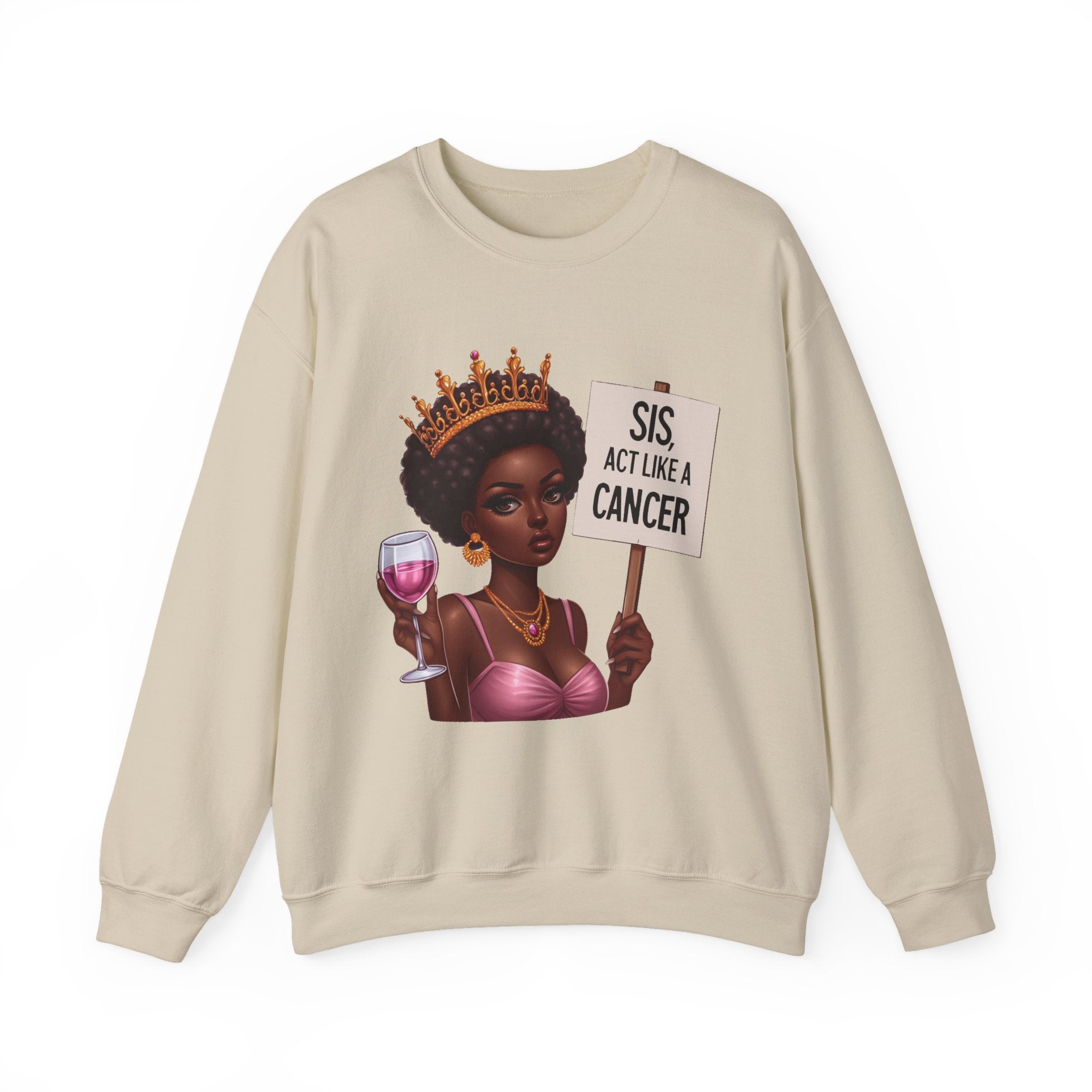 Soft heart. Sharp tongue. This sweatshirt is for the Cancer who feels deeply, loves fiercely, and will cut you off quietly. Featuring our emotional but elegant muse, this design wraps you in comfort while you journal, cook, cry, or plot revenge — all in the same day.