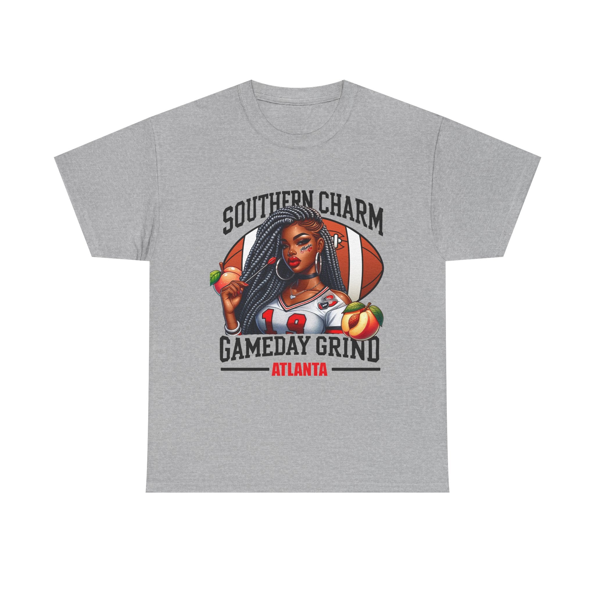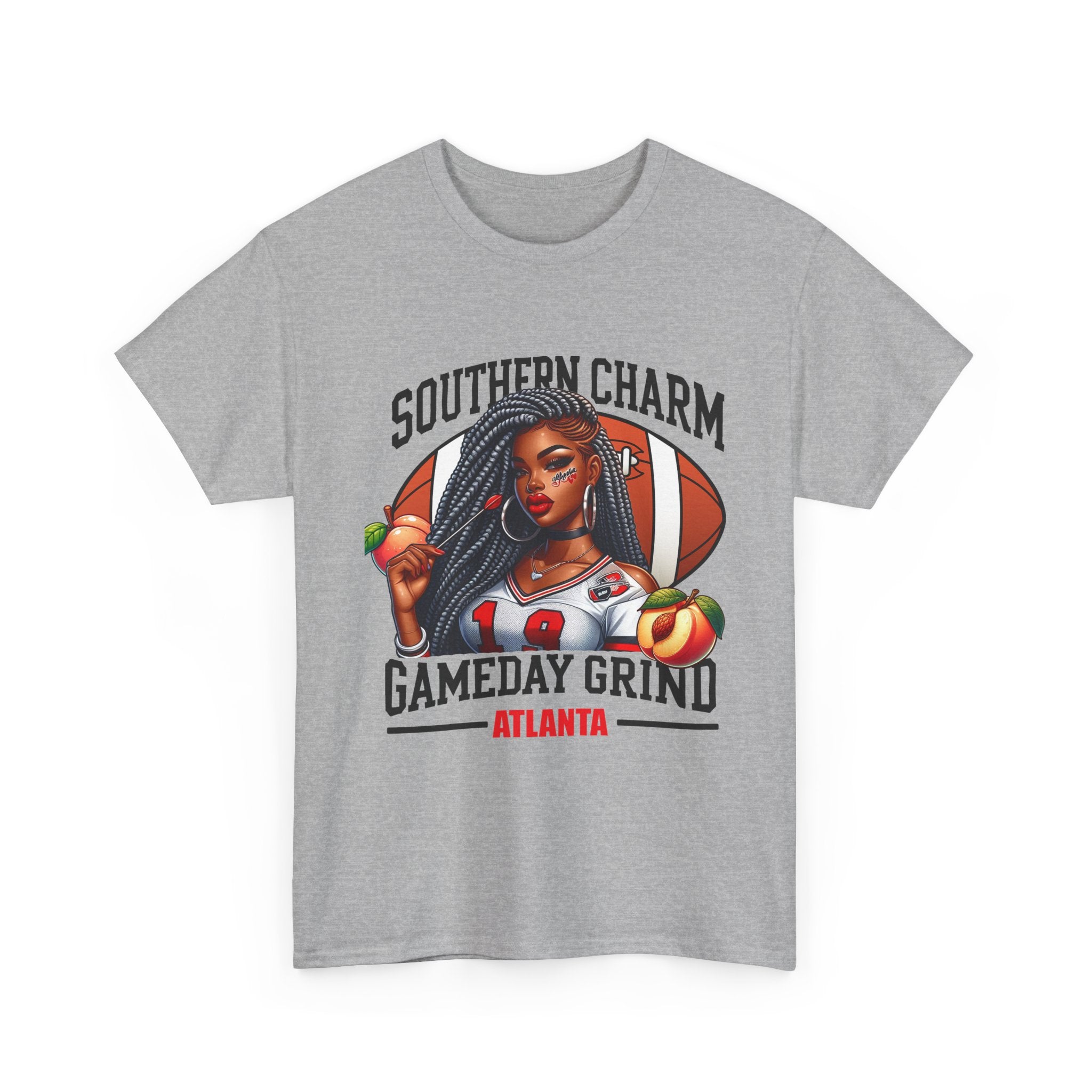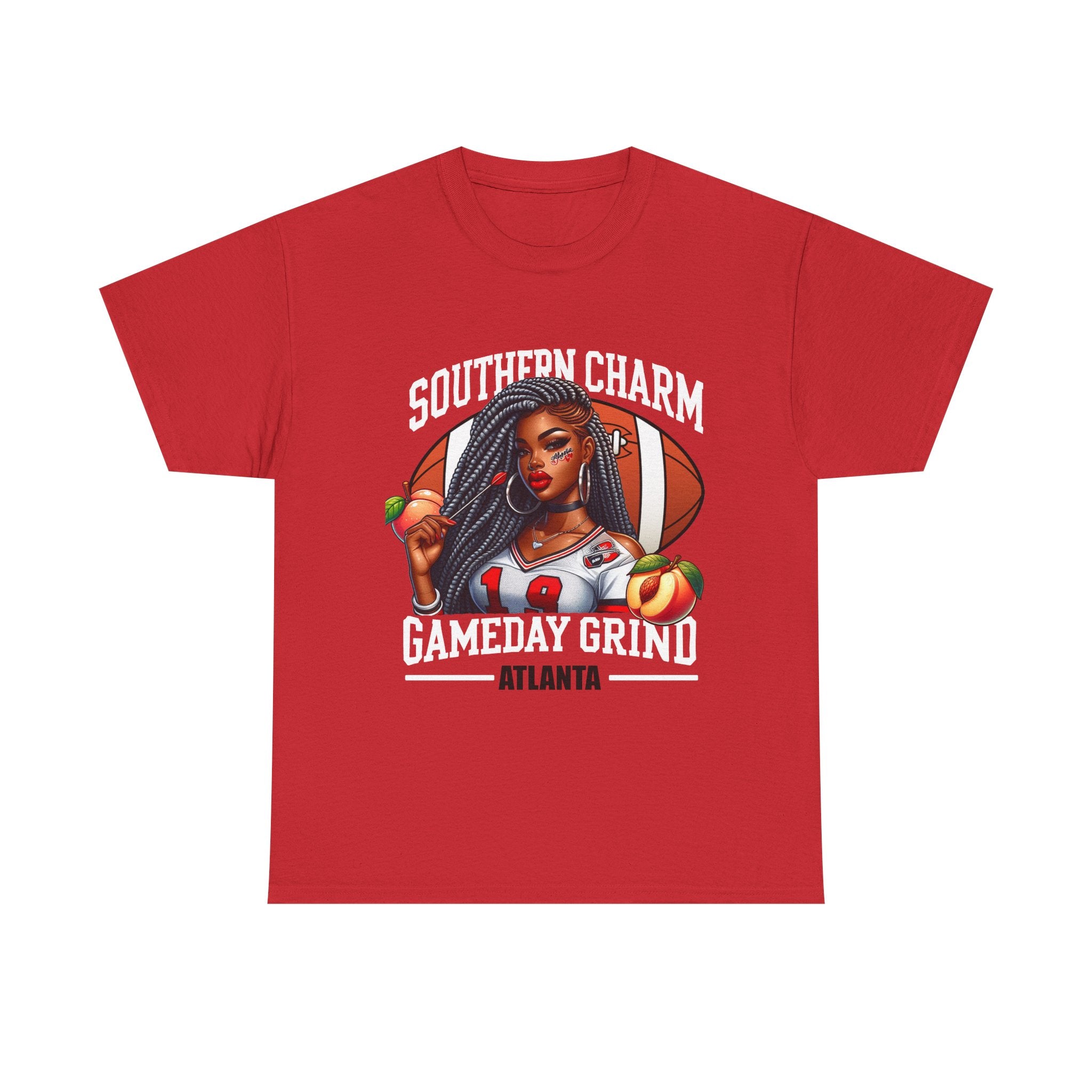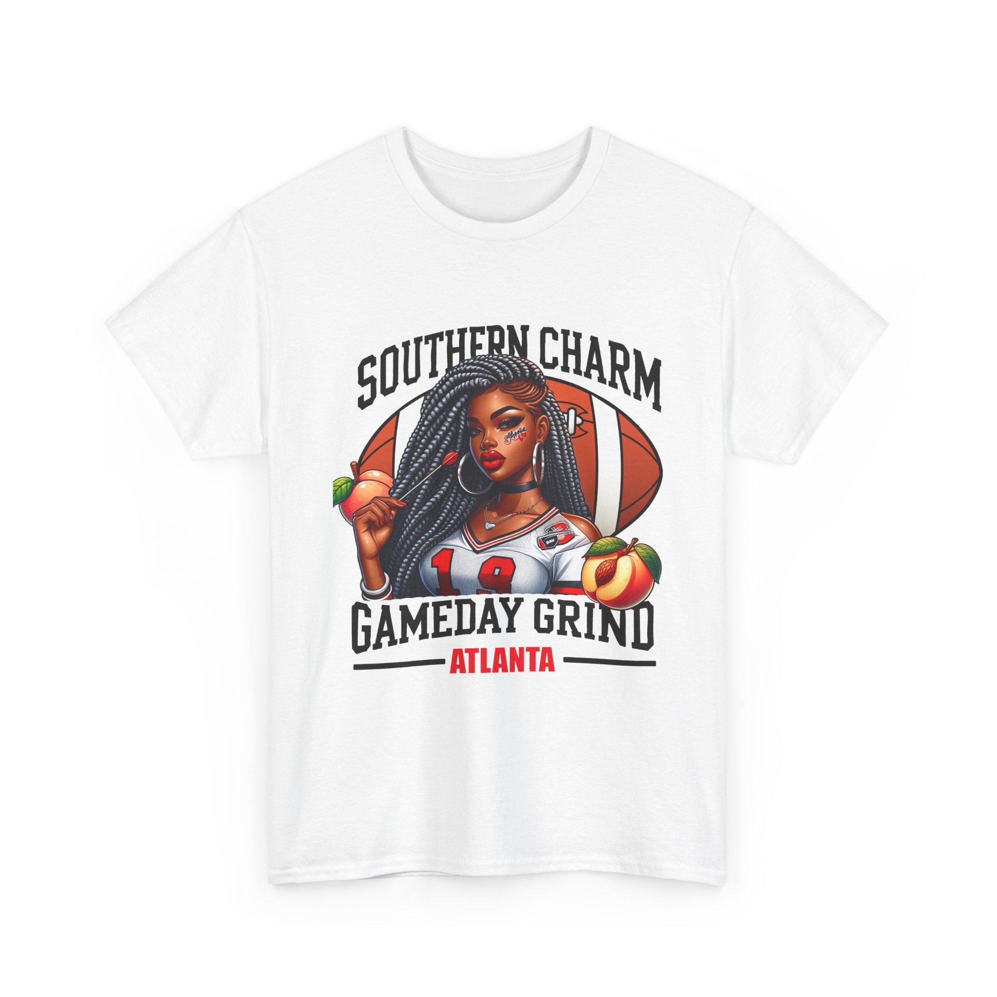 This tee brings the heat with a braided beauty repping jersey #19, holding a football and an apple like she owns the stadium. With βSouthern Charmβ up top and βGameday Grindβ stamped below β plus ATLANTA in bold red β itβs a whole vibe for game day queens who show up and show out.